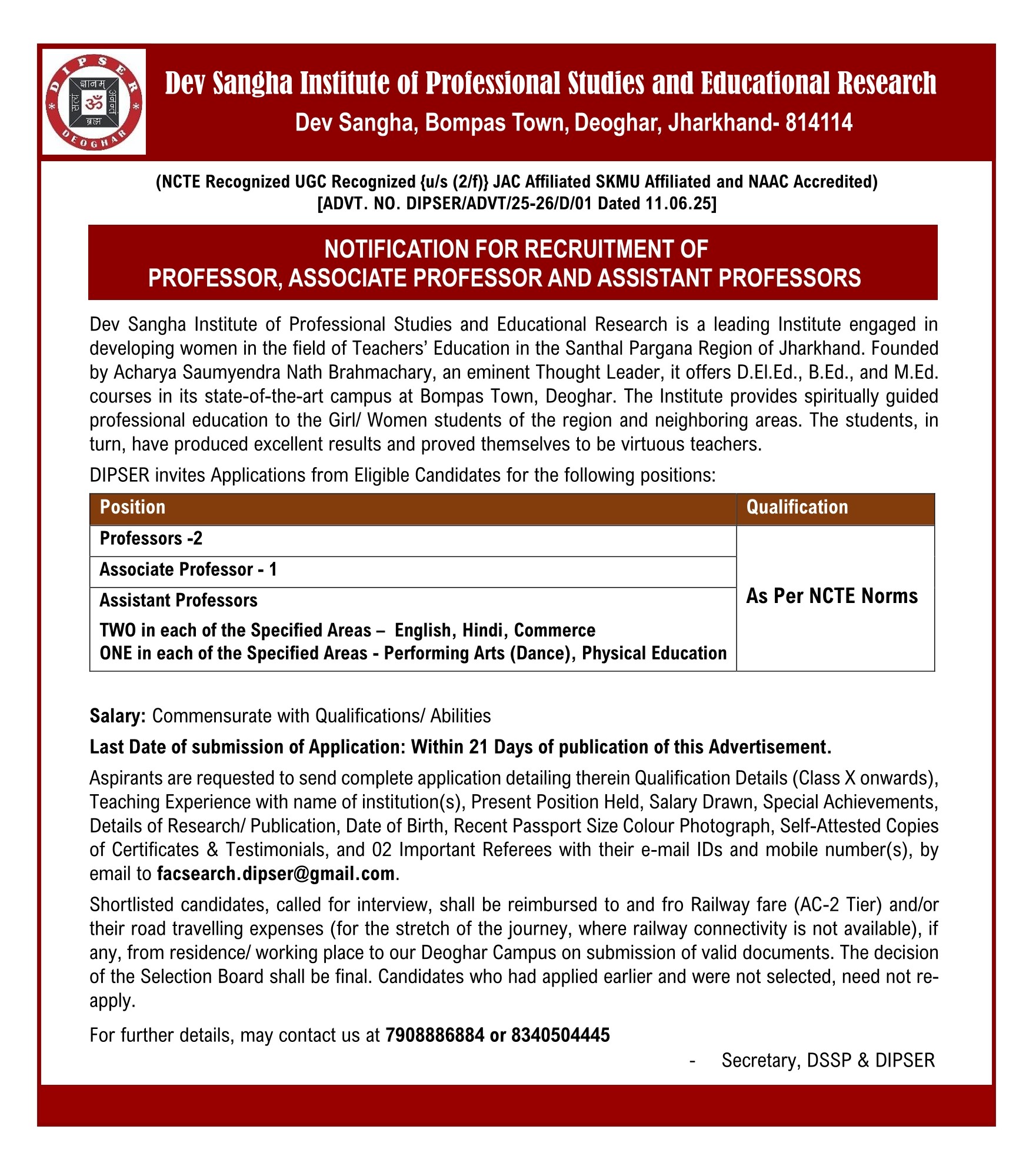 Notification for Recruitment of Professor, Associate Professor and Assistant Professors. Posted on June 10, 2025August 1, 2025 by admin