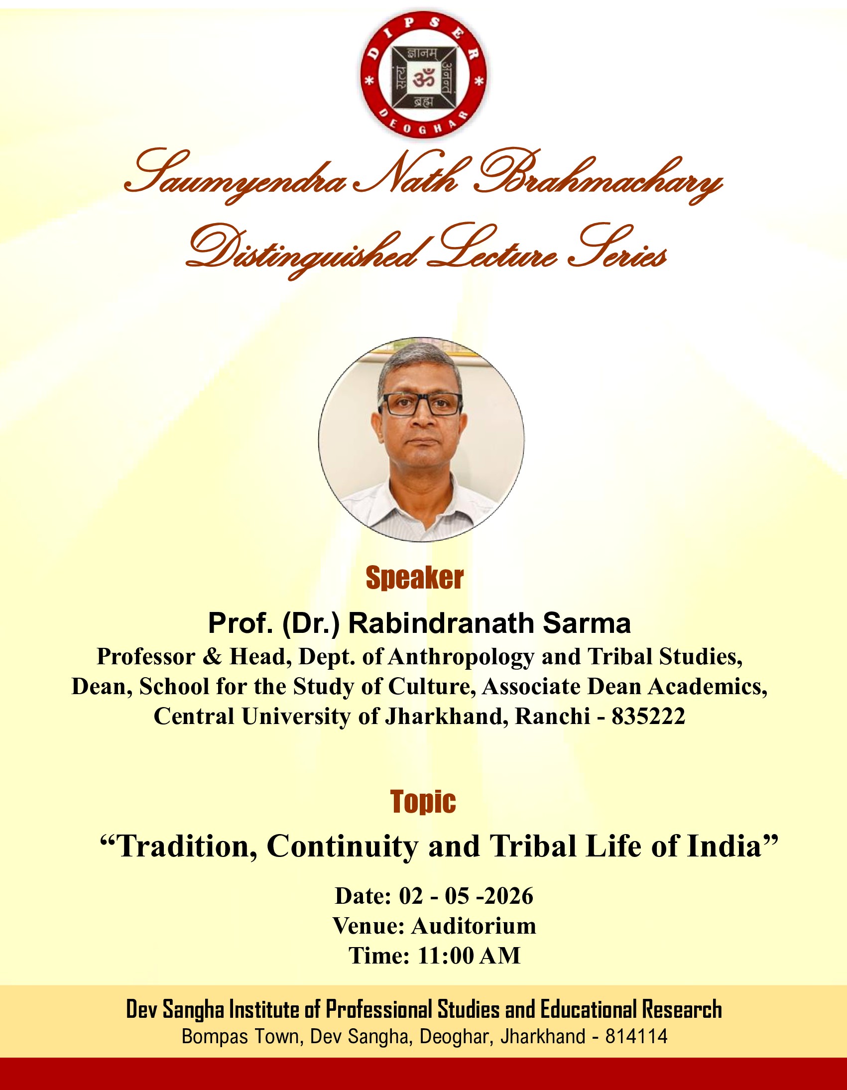 Saumyendra Nath Brahmachary Distinguished Lecture Series – Lecture by Prof. (Dr.) Rabindranath Sarma, 02.05.2026 Posted on April 28, 2026April 28, 2026 by admin Posted in Notice.